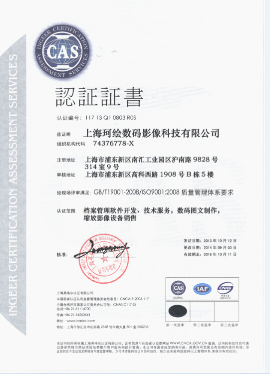 GBT19001-2008IS9001:2008質量管理÷☆§(lǐ)體(tǐ)系認證證書(shū)