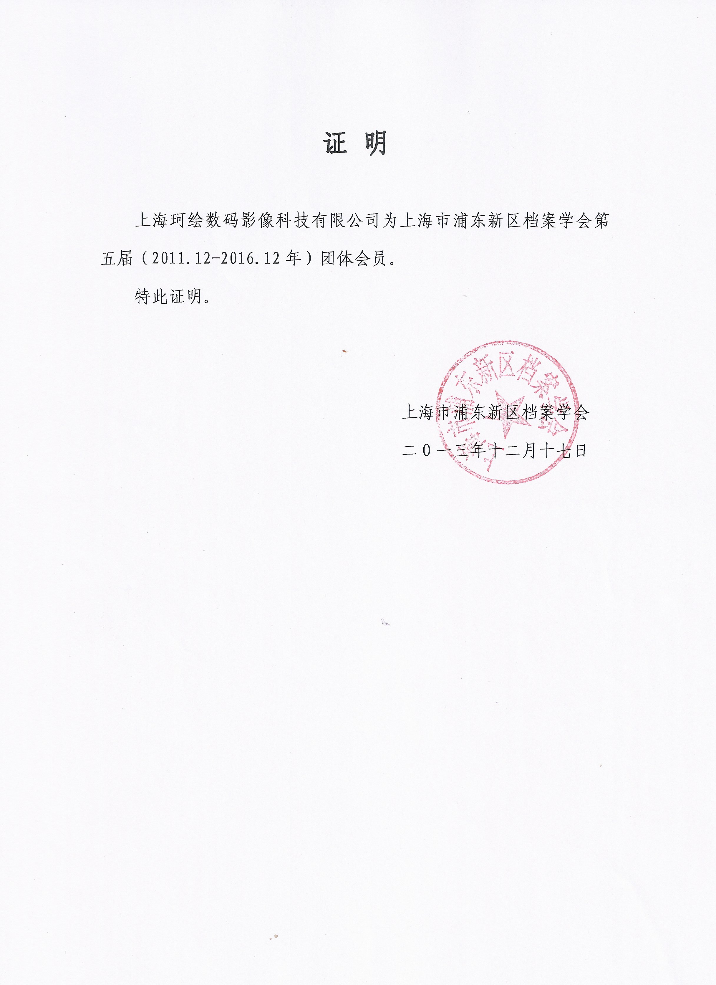 上(shàng)海(hǎi)市(shì)浦東(dōng)新區(qū)檔案©×↔π學會(huì)(證明(míng))