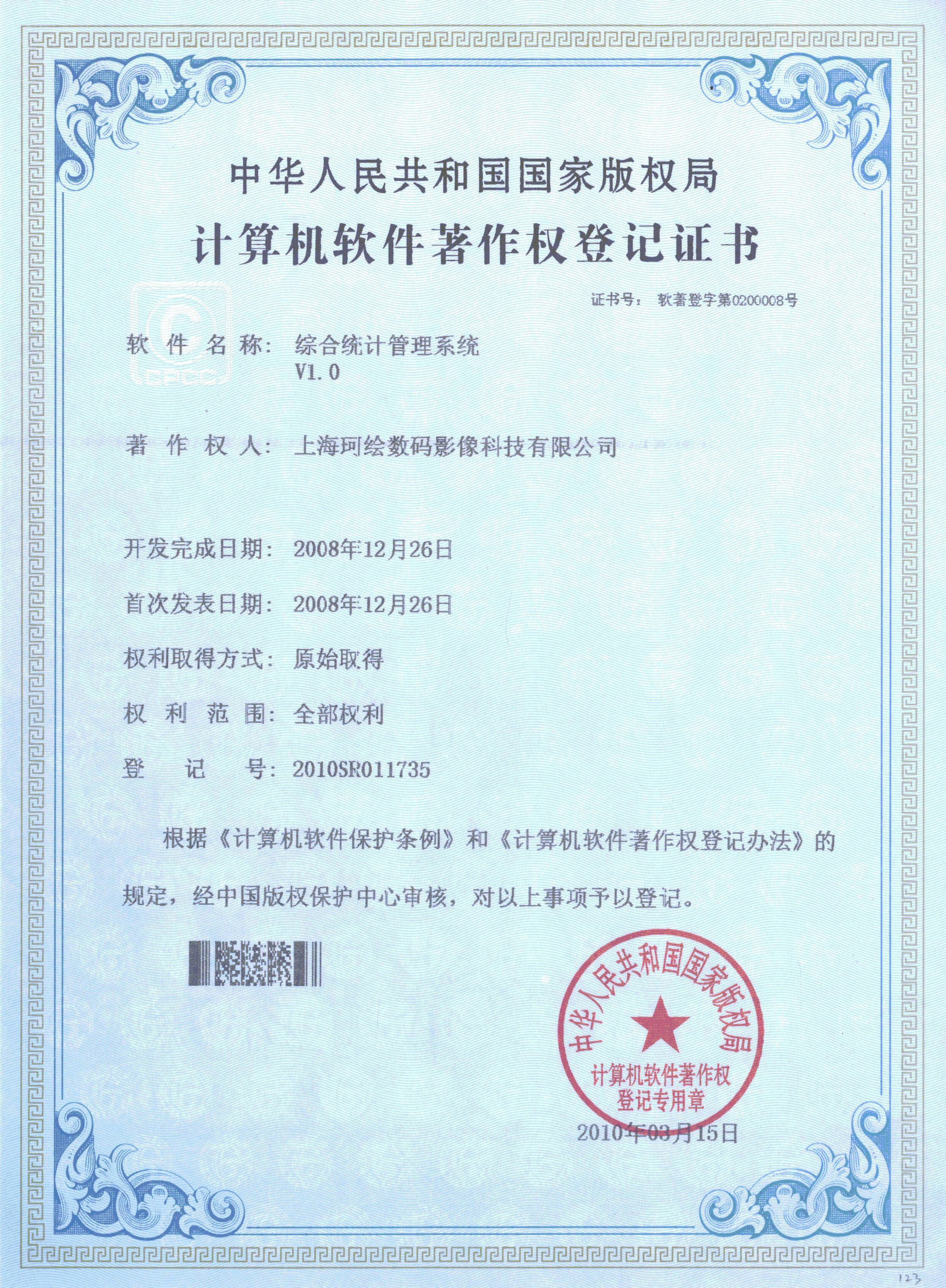 計(jì)算(suàn)機(jī)軟件(jiàn)著作(zuò)權<↑↓₹登記證書(shū)